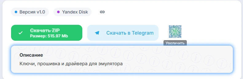 Там же, где и файл с эмулятором, нажмите "Скачать" и пролистайте немного ниже