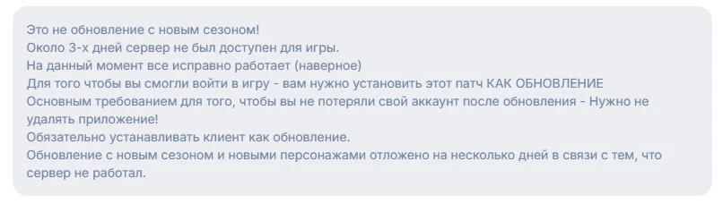 Добавили патч, обратите внимание на этот текст!